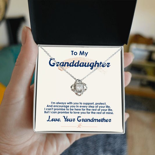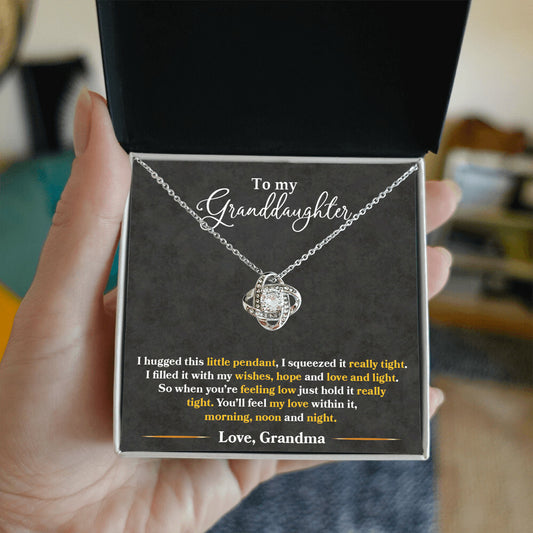 To My Granddaughter, Hold This Tight To Feel My Love - Love Knot Necklace