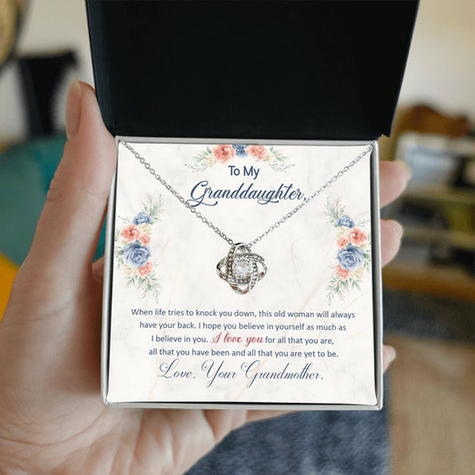 To My Granddaughter, This Old Woman Will Always Have Your Back - Love Knot Necklace